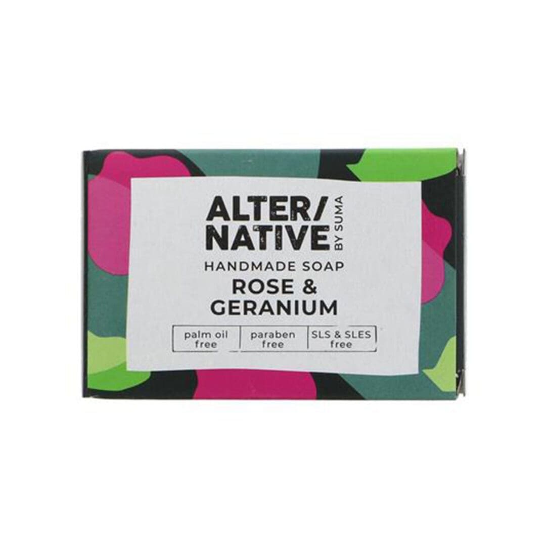 Sodium olivate, Sodium cocoate, Aqua, Butyrospermum parkii (shea) butter, Pelargonium graveolens roseum (rose geranium) essential oil contains geraniol, citronella, linalool, Rosa centifolia ( rose petals, red), Rubia tinctorum (madder root) powder.