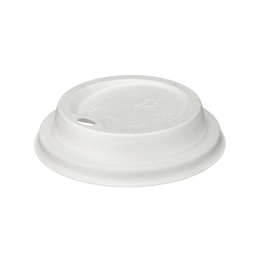 Eco-friendly Bagasse lids designed for 12/16oz cups, made from pressed sugarcane residue. Fully compostable at home, ideal for sustainable beverage serving.