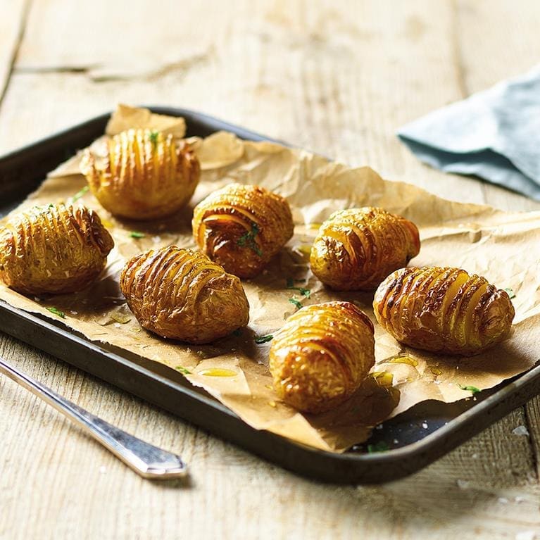 Bannisters Yorkshire Family Farm baby Hasselback potatoes, oven baked with cold pressed rapeseed oil. Perfect as a tasty and stylish side dish.