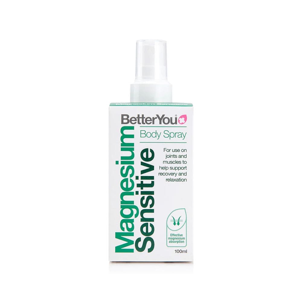 Better You Magnesium Oil Sensitive provides gentle magnesium support tailored for delicate skin, helping to ease muscle tension and promote relaxation. Supplied in a convenient 100ml spray bottle.