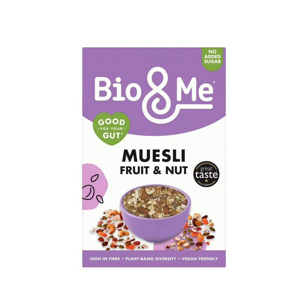 Bio and Me Fruit Nut Muesli delivers 2g of chicory inulin per 450g pack, supporting digestive health. Ideal for a nutritious start with milk or yoghurt.