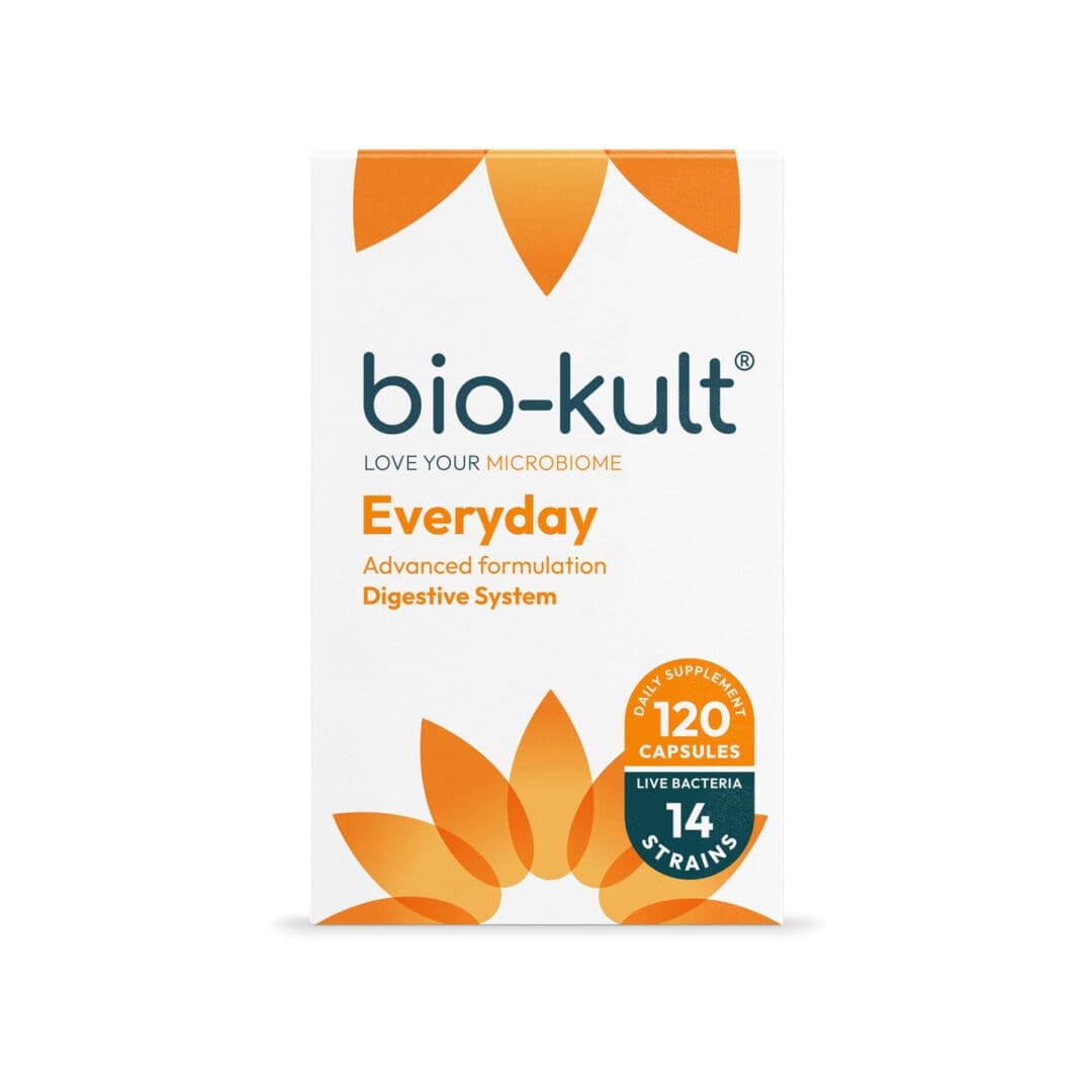 Bio-Kult Everyday 120 supports digestion using 14 live bacterial strains to maintain balanced gut flora. Ideal for daily use to improve digestive ease.