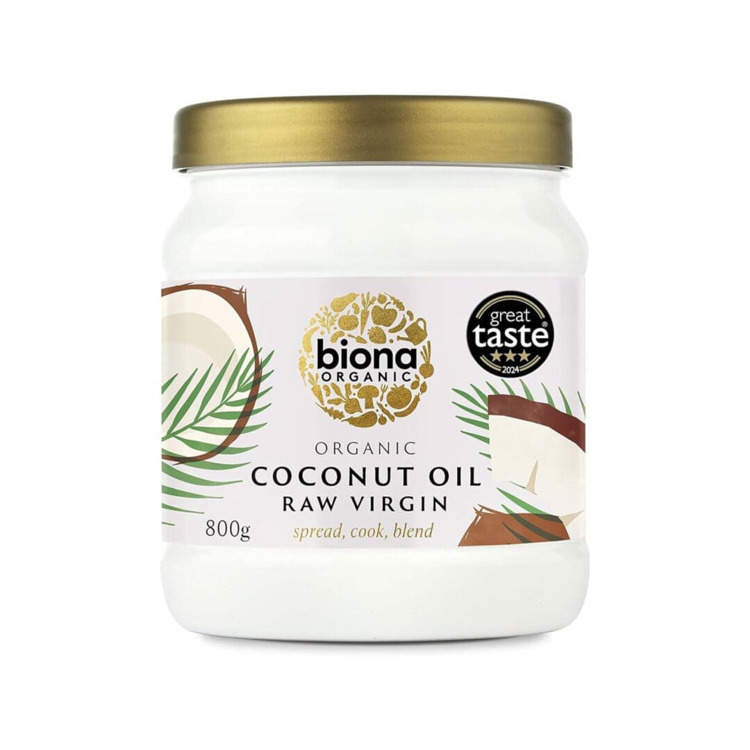 Biona Organic Coconut Oil 800g is pure and organic, ideal for cooking, baking or skincare. Enjoy its rich flavour and versatility in your daily use.