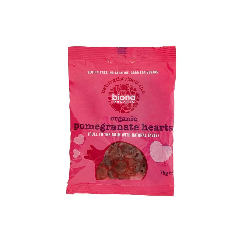 Biona Organic Pomegranate Hearts Vegetarian offer a delightful organic treat with real pomegranate juice in convenient 10x75g packs, ideal for catering and retail.