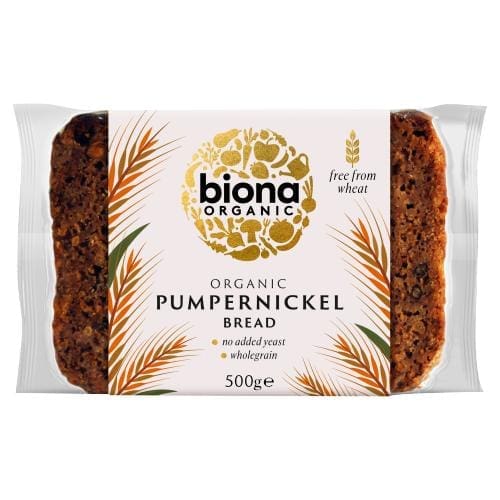 Biona Organic Pumpernickel Bread delivers a richly caramelised sweet rye flavour in a 500g organic loaf, ideal for artisan sandwiches or hearty dishes.