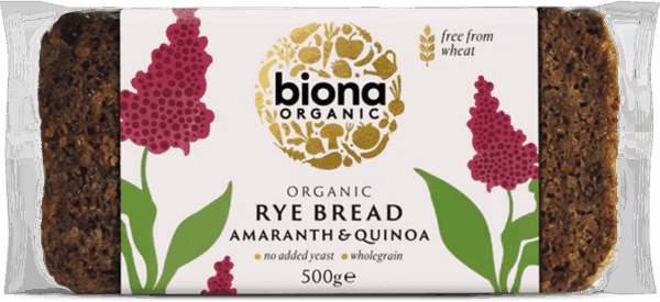 Biona Organic Rye Amaranth Quinoa Bread is a 500g organic loaf, rich in fibre and flavour, ideal for healthy menus and versatile serving options.
