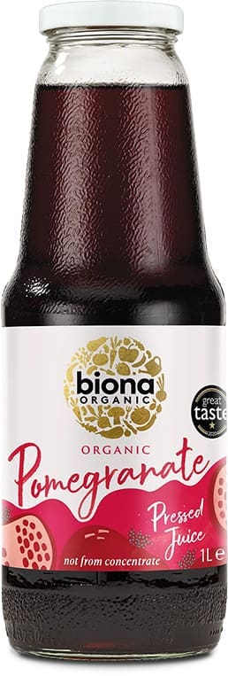 Biona Organic Pomegranate Pure Juice offers 200ml of pure organic juice with a vibrant ruby red colour and antioxidant benefits, perfect chilled for refreshment.