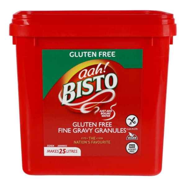 Bisto Gluten Free Gravy Granules 1.8kg provide a rich, gluten free gravy that is simple to prepare. Ideal for elevating roasts and catering dishes with trusted classic flavour.