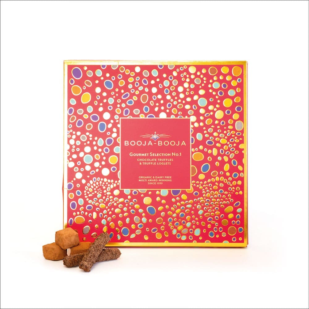 Chocolate* (Cocoa Mass*, Cane Sugar*, Cocoa Butter*, Vanilla Powder*), Coconut Oil*, Hazelnuts*, Almond Paste*, Cane Sugar*, Cocoa Powder*, Dried Cherries*, Coconut Syrup*, Dried Mandarin Pieces*, Water, Dried Apple*, Ground Coffee*, Orange Extract*, Agave Syrup*, Sea Salt, Stem Ginger* (Ginger*, Cane Sugar*), Cinnamon*, Vanilla Extract*, Almond Extract, *= Organically Grown ingredients, Chocolate: minimum Cocoa Solids 55%
