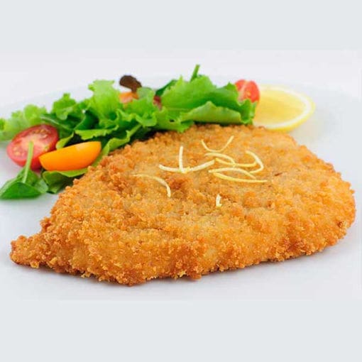 Breaded Chicken Escalope with crispy coating, ideal for quick frying or baking. Perfect for varied menus, supplied in 10x210g packs.