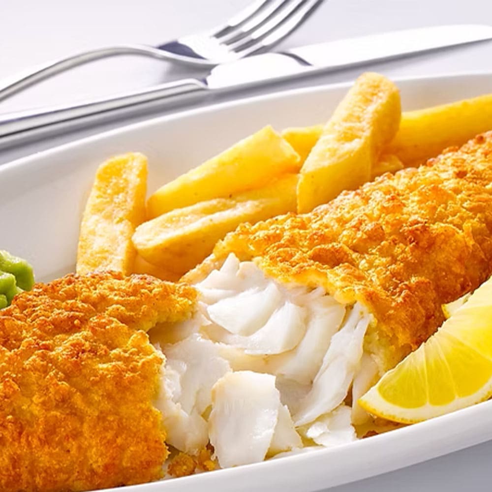 Breaded Cod fillets 80-110g, expertly coated for a crisp, golden finish. Suitable for frying or baking, packed 1x30 for efficient storage and handling.