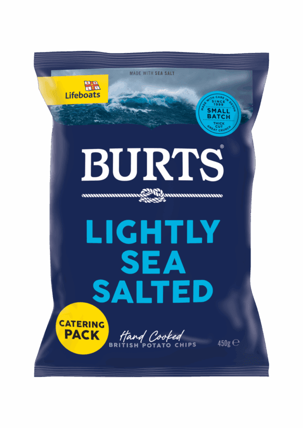 Burts Sea Salt Crisps Catering Pack 4x450g delivers light, crispy snacks seasoned with natural sea salt. Ideal for catering or hospitality use. Serve with dips or cheese.