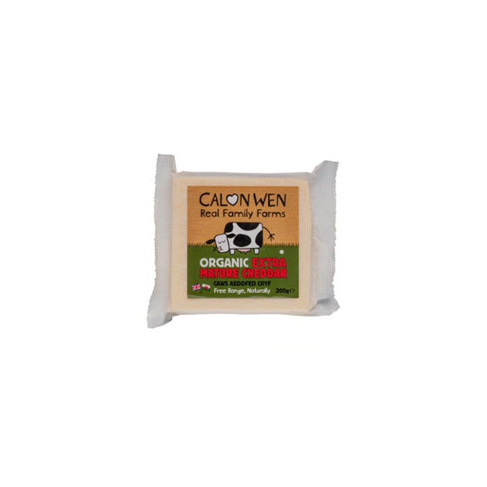 Calon Wen Extra Mature Organic Cheddar 200g combines a robust yet smooth creamy texture with a rich flavour, perfect for gourmet dishes and cheese boards.