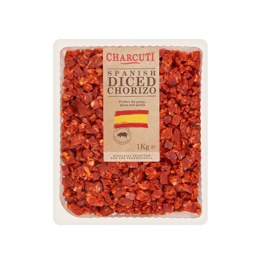 Charcuti Diced Chorizo offers rich, authentic flavour in convenient 1kg packs, ideal for professional kitchens seeking consistent, quality chacuterie.