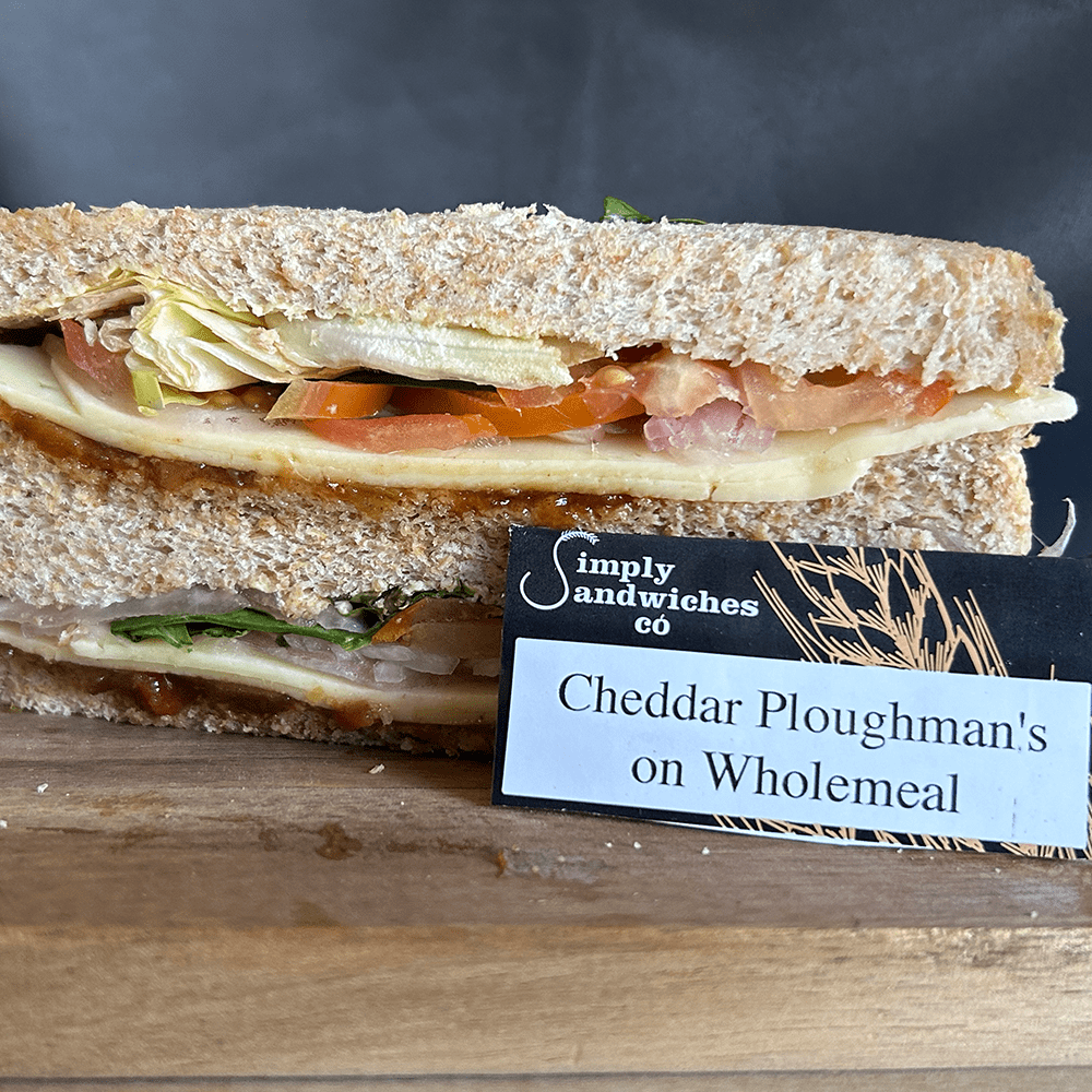 Classic Cheddar Ploughman Sandwich featuring mature cheddar and crisp salad on soft bread. Ideal for a satisfying lunch or snack in any catering setting.