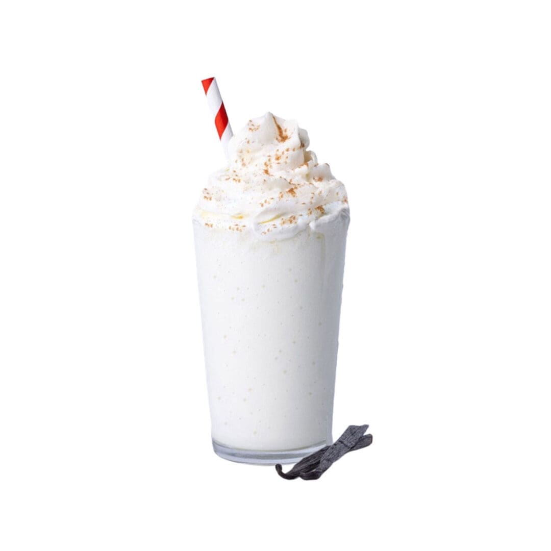 Water, sugar, coconut oil (10%), glucose powder, chicory root fibre, chickpea flour, emulsifier (mono and diglycerides of fatty acids), stabilisers (locust bean gum, guar gum, carrageenan), natural vanilla flavourings (0.42%), salt, vanilla bean powder (0.03%), colours (annatto norbixin, curcumin).