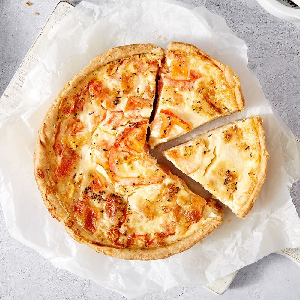 Thorner’s Cheese & Tomato Quiche is a classic handmade quiche featuring cheddar and tomato in a crisp shortcrust pastry. Ideal to serve hot or cold for lunch.
