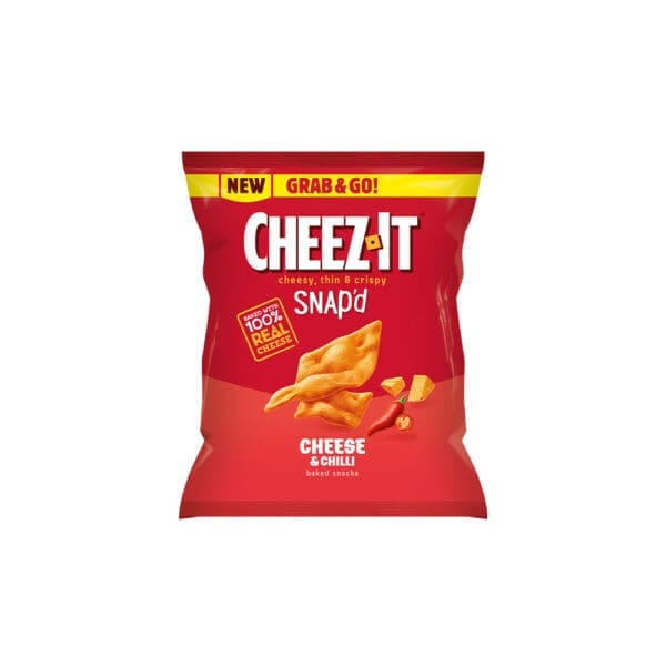 Cheez-it Snap’d Cheese and Chilli crisps combine creamy cheese with a balanced chilli heat, ideal for sharing or as a tasty snack option in 20x40g packs.
