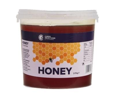 Chefs’ Selections Clear Honey Tub 3.17kg delivers pure clear honey ideal for cooking, glazing, and sweetening in professional kitchens, packed in a resealable tub.