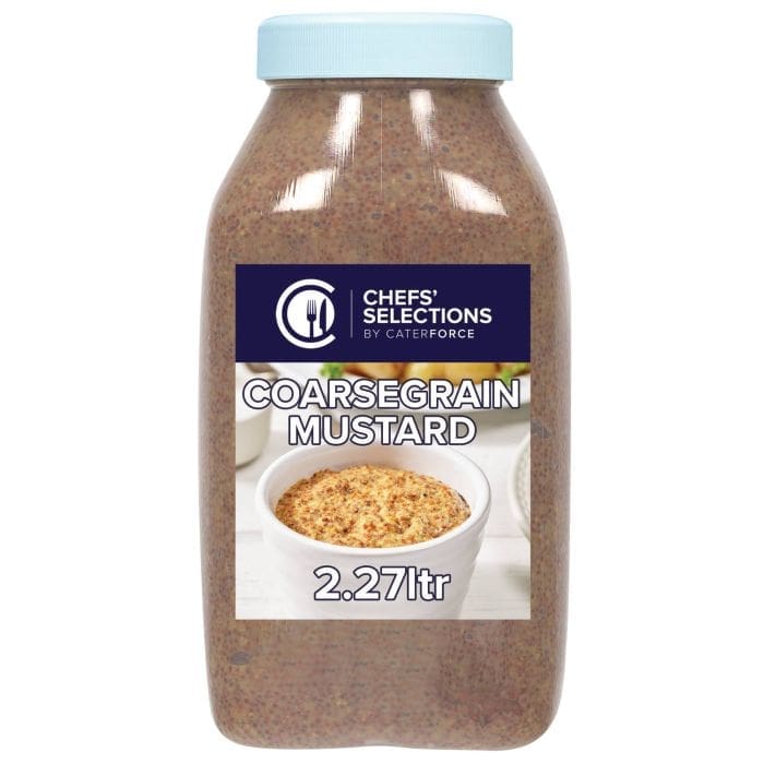 Chefs’ Selections Coarse Grain Mustard in a 2.27lt pack delivers a sharp, textured flavour with ground and whole mustard seeds. Ideal for sauces, dressings, and marinades.
