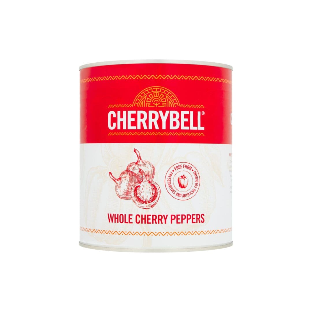 Cherrybell Whole Sweet Peppers in brine offer a sweet, spicy crunch, ideal for salads, antipasti, or sandwiches. Available in 3kg packs.