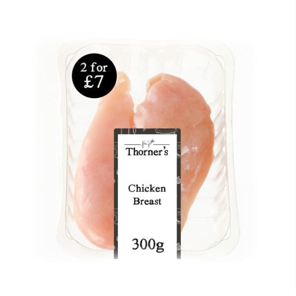 High-quality Chicken Breast Fillets in 300g packs from Thorners, ideal for diverse culinary uses. Tender, fresh, and perfect for professional kitchens.