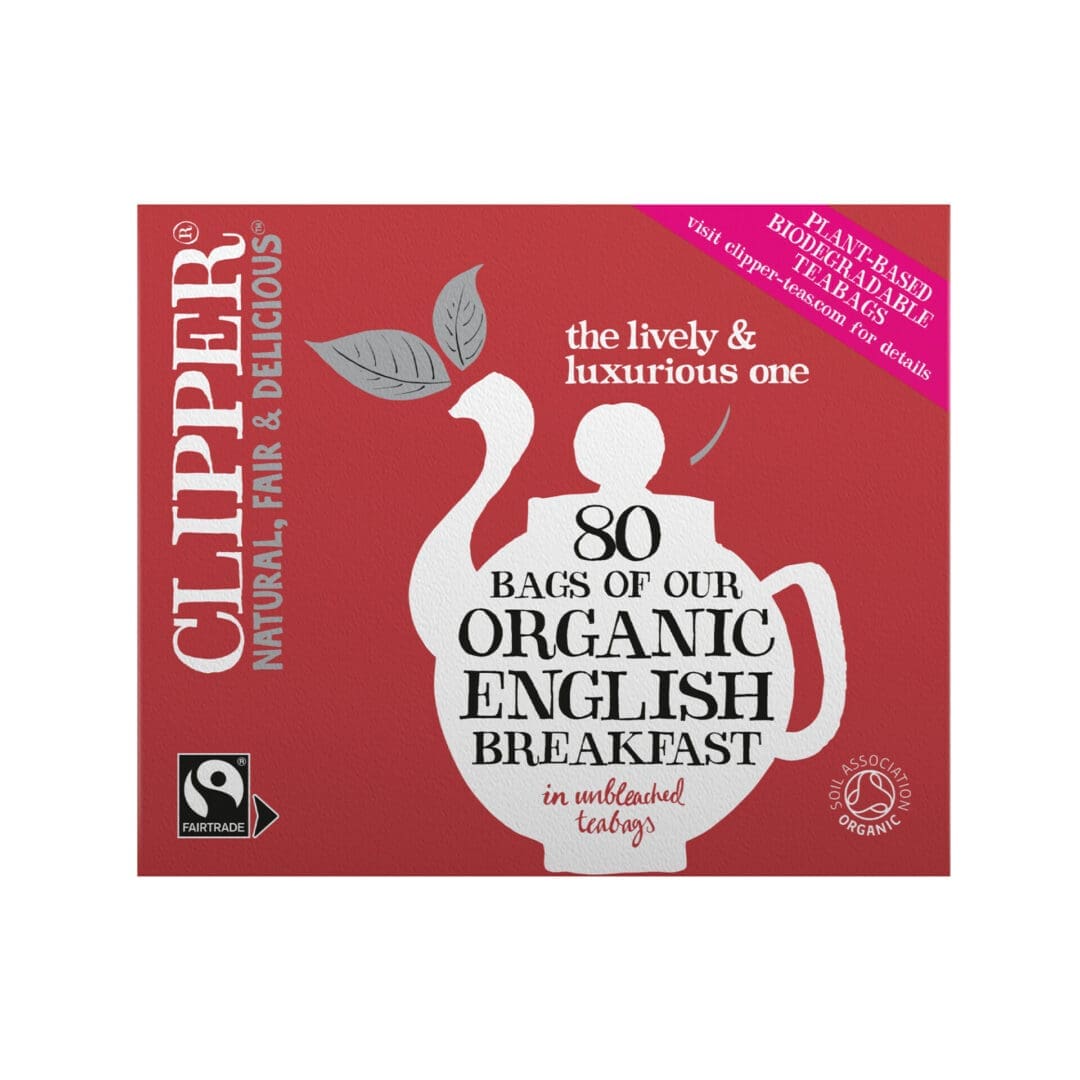 Clipper Organic Fairtrade English Breakfast Tea offers a bold, authentic flavour with ethical packaging. Supplied in a convenient 4x80 bag format, perfect for professional use.