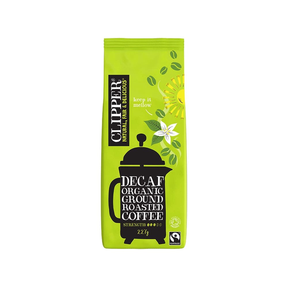 Clipper Organic Decaffeinated Coffee 227g is expertly roasted and ground to deliver a rich, smooth flavour without caffeine, ideal for premium coffee menus.