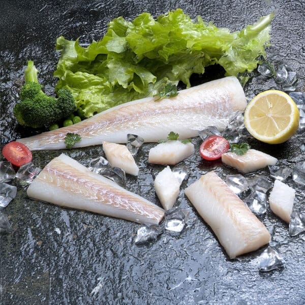 Skinless and boneless cod tail cut fillets weighing 170-200g, perfect for diverse seafood dishes. Suitable for grilling, baking or frying in professional kitchens.