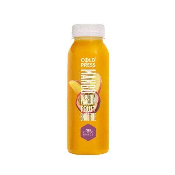 Apple Juice, Mango Puree (20%), Apple Puree, Banana Puree, Orange Juice, Peach Puree, Passion Fruit Juice (2.5%), Lime Juice, Added Vitamins B1, B2, B3, B6, C, D and E