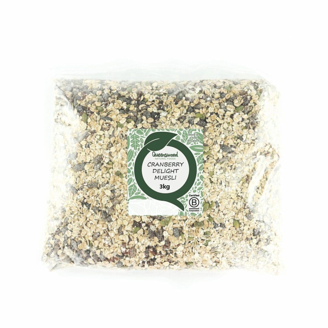 Cranberry Delight Muesli combines cranberries, seeds, and soaked grains into a wholesome cereal blend. Supplied in 3kg pack, ideal for professional kitchens.