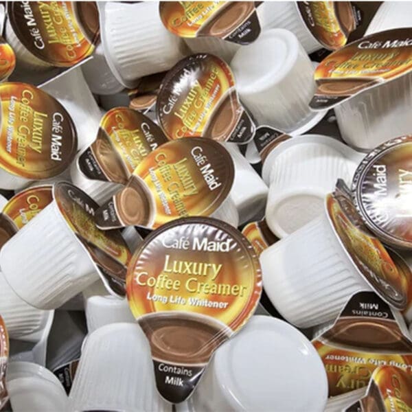 Water, Vegetable Oils (Palm and Coconut), Maltodextrin, MILK Proteins, Sugar, Acidity Regulators E339b, E500, Emulsifiers E471, E435, Stabiliser E407, Colour E160(a).