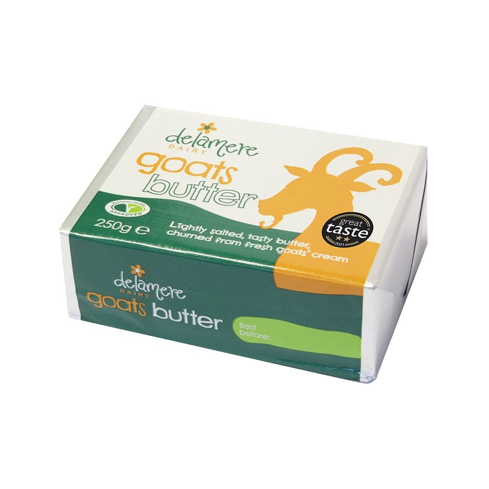 Goats’ Butter (from Goats’ Milk), Salt 1%, Colour: Beta Carotene