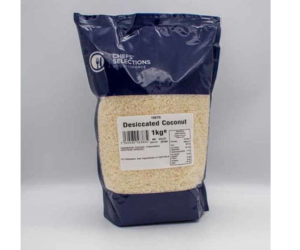 Premium desiccated coconut 1kg, finely shredded for baking and cooking. Ideal for adding rich flavour and texture to cakes, pastries, and desserts.