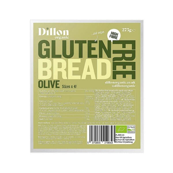 Dillon Organic Olive Sliced Keto Bread is gluten free and perfect for healthy, low-carb menus. Ready-sliced 275g loaf ideal for deli and sandwich options.