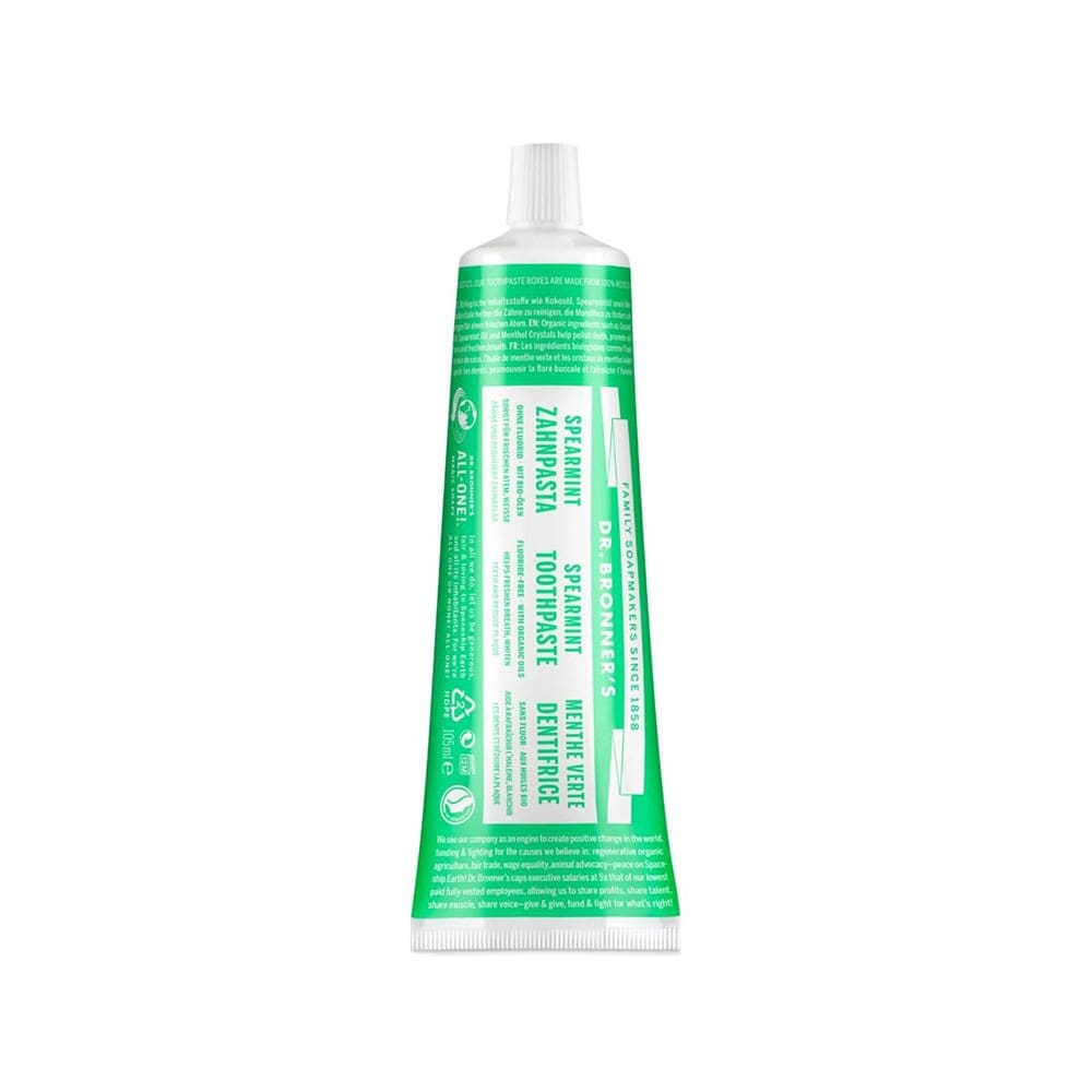 Dr Bronner Spearmint Toothpaste 105ml offers natural, fresh breath and effective tooth care. Ideal for daily use with a refreshing spearmint flavour.