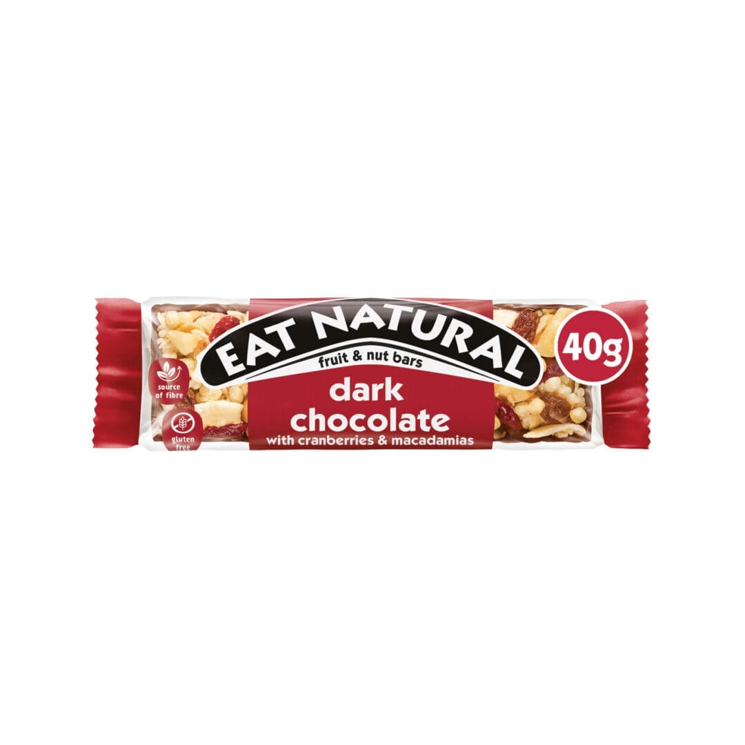 Shredded Coconut 21%, Dark Chocolate 20% (Cocoa Mass, Sugar, Cocoa Butter, Emulsifier: Soya Lecithin), Sultanas 16% (Sultanas, Sunflower Oil), Glucose Syrup, Crisped Rice (Rice Flour, Rice Bran, Sugar), Dried Cranberries 8% (Sugar, Cranberries, Sunflower Oil), Honey, Macadamia Nuts 6%