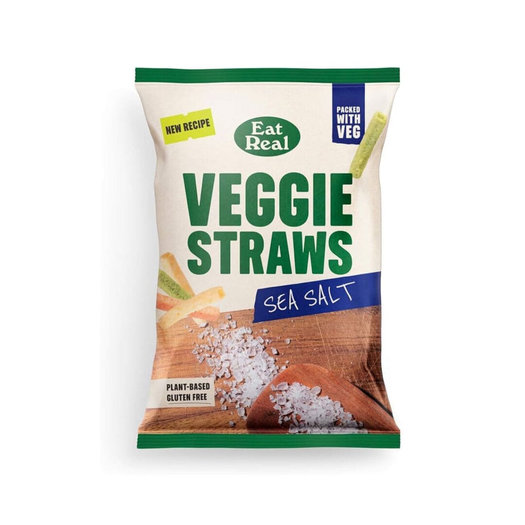 Eat Real Veggie Straws Sea Salt offer a crunchy snack made from real vegetables, lightly seasoned with sea salt. Supplied in 10x110g packs, ideal for healthy menus.
