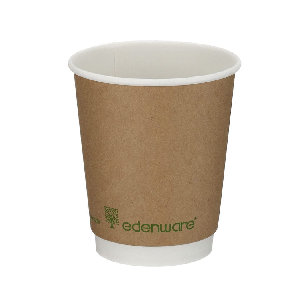 Edenware 8oz Ripple Wall Cup offers a compostable, kraft-coloured design with a biodegradable PLA lining, ideal for serving hot drinks sustainably in bulk packs of 500.