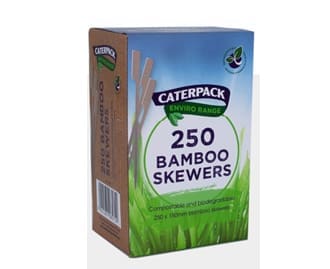 Enviro Bamboo Skewers 150mm are fully biodegradable and ideal for BBQs, buffets, meats, and fruit. Pack of 250 skewers designed for easy handling.