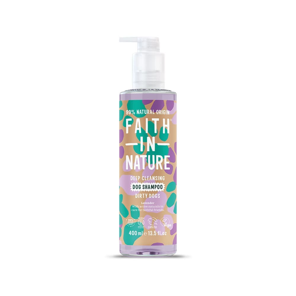 Faith in Nature Lavender Dog Shampoo 400ml gently cleanses and soothes with natural ingredients for a soft, shiny coat and a calming scent.