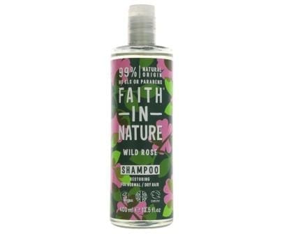 Faith in Nature Wild Rose Shampoo 400ml gently cleanses and nourishes hair, enriched with natural wild rose extracts, ideal for normal hair and scalp daily care.