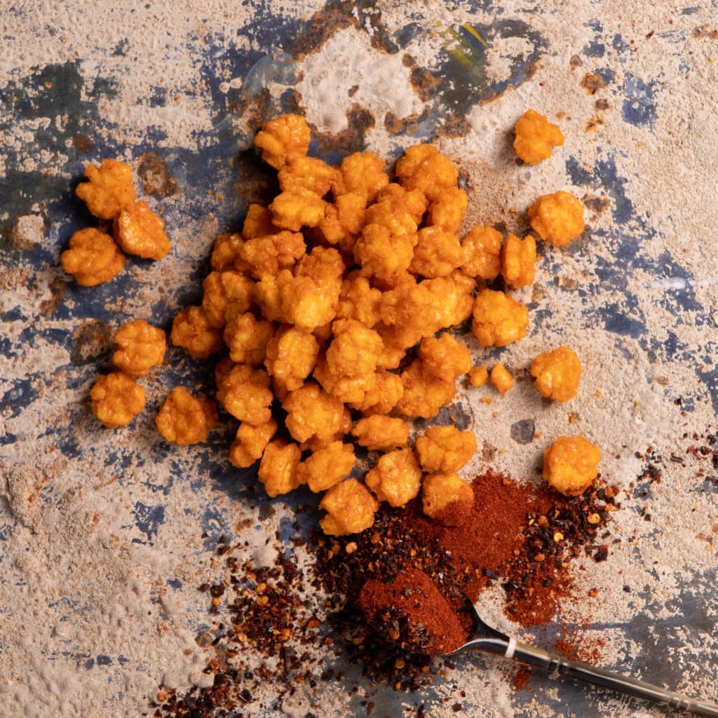 Rice (41%), Sunflower Oil, Sugar, Tapioca Starch, Soy Sauce (water, salt, soy bean, wheat), Salt, Garlic Powder, Colour (E160c), Maltodextrin, Capsicum Extract, Liquorice Powder, Flavour Enhancers (E631, E627).