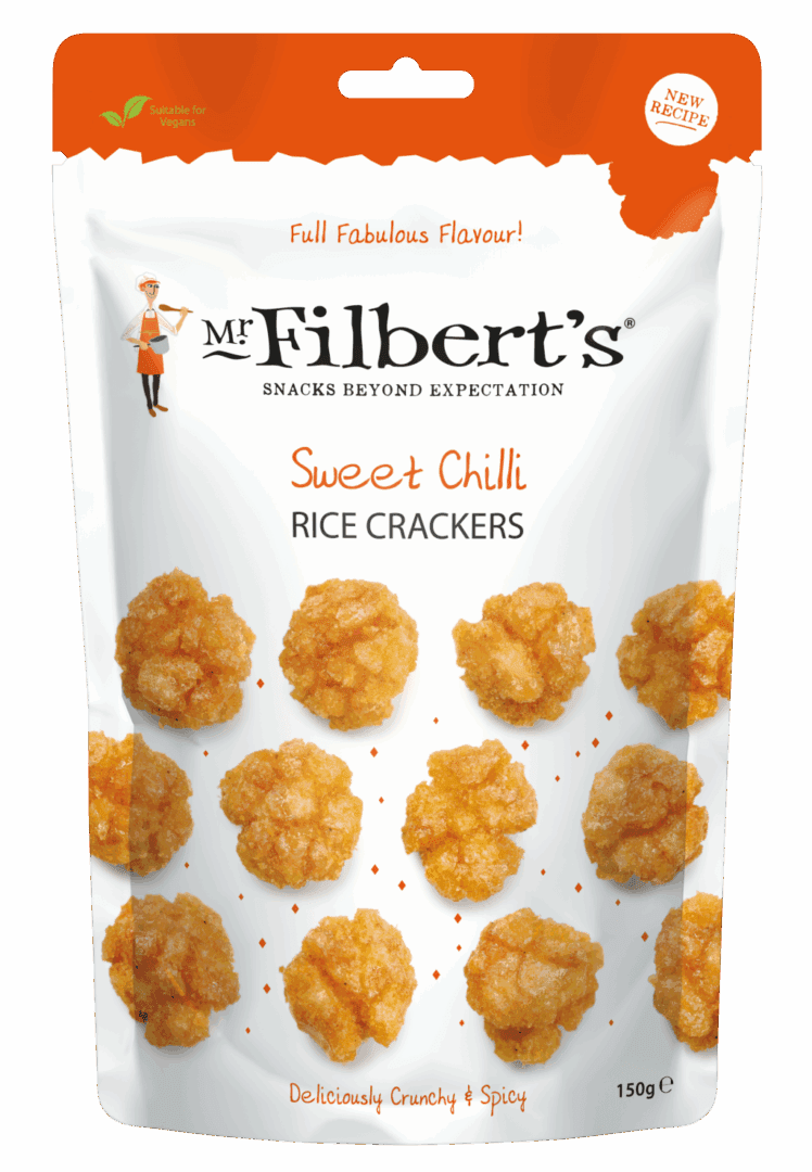 Filberts Chilli Rice Crackers in 6x150g packs deliver a spicy, crunchy snack ideal for serving alone or with dips and cheese. Bold flavour with consistent quality.