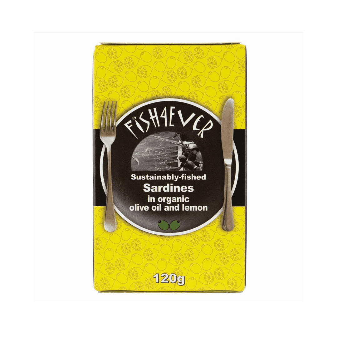 Fish4Ever Sardines in organic olive oil & lemon present a premium, wholesome seafood option ideal for salads, pasta dishes, or straightforward serving in 120g packs.