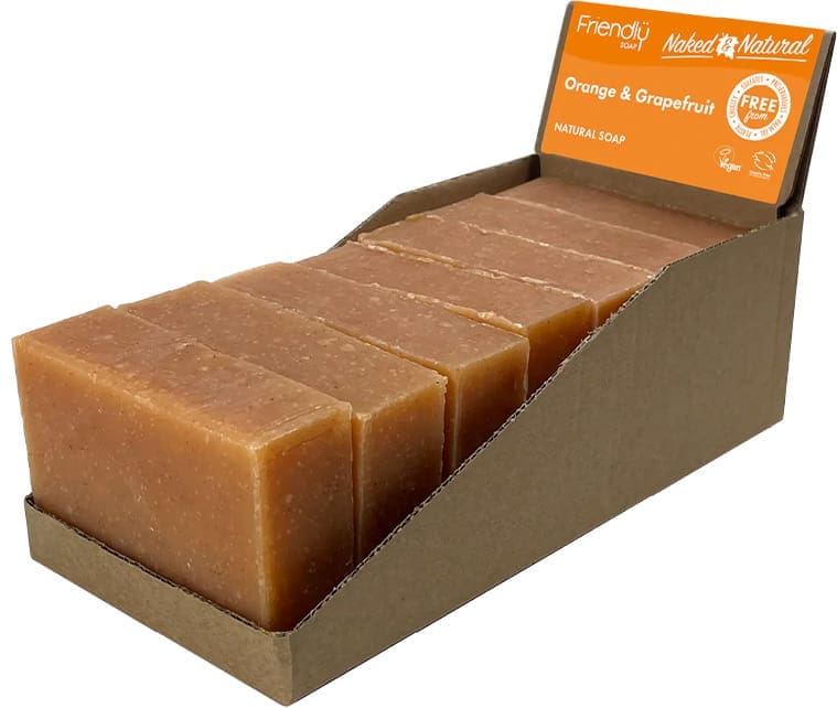Natural Orange Grapefruit Soap by Friendly Soap delivers a fresh, zesty citrus cleanse. Available in 6x95g bars, ideal for enhancing your bodycare selection.
