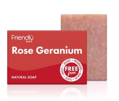 Friendly Soap Rose Geranium Soap provides natural, gentle cleansing with a fresh floral aroma. Supplied as 6x95g bars, ideal for deluxe bodycare collections.