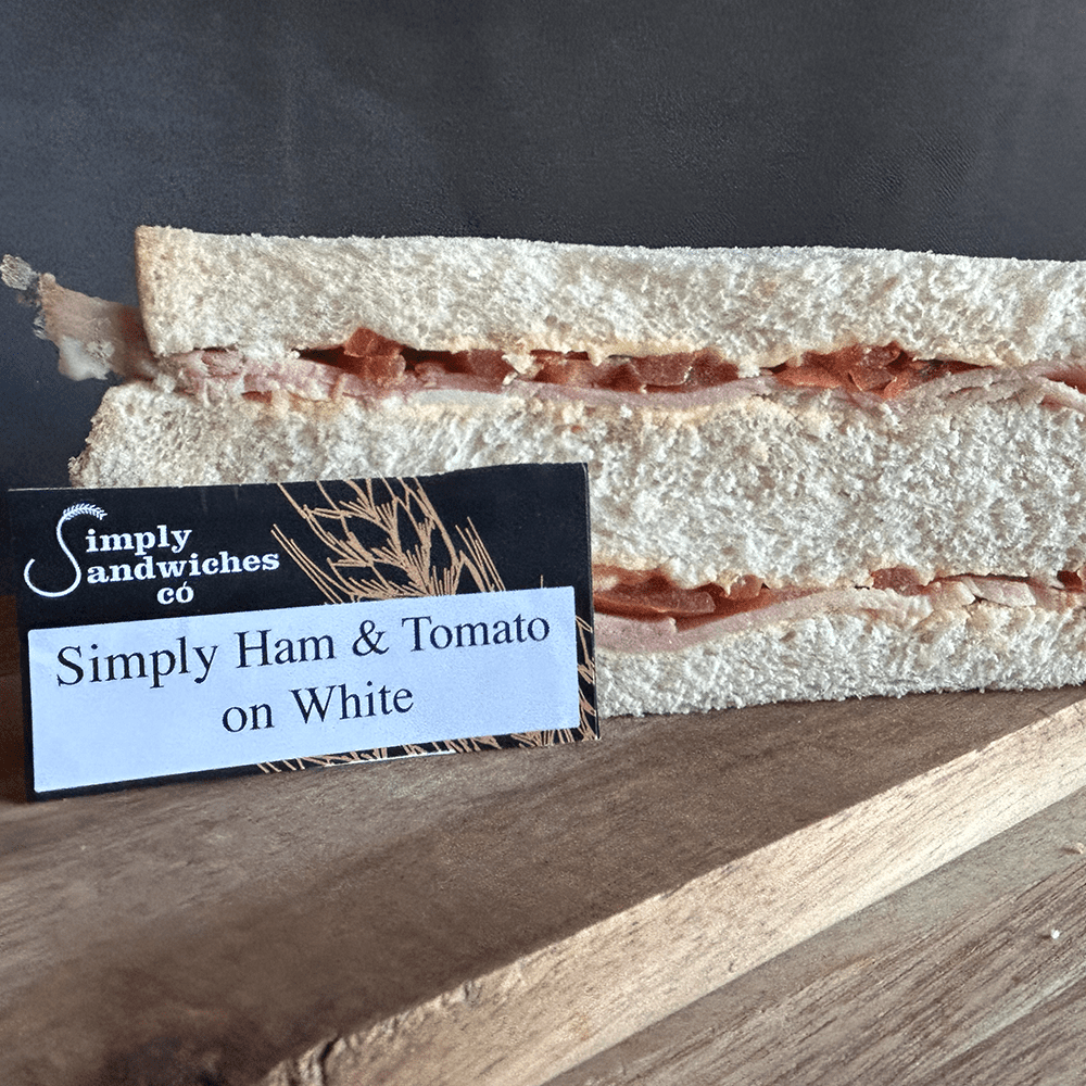 Fresh Gammon Ham & Tomato Sandwich featuring ripe tomato and tender ham on soft bread, ideal for quick and flavoursome lunches.