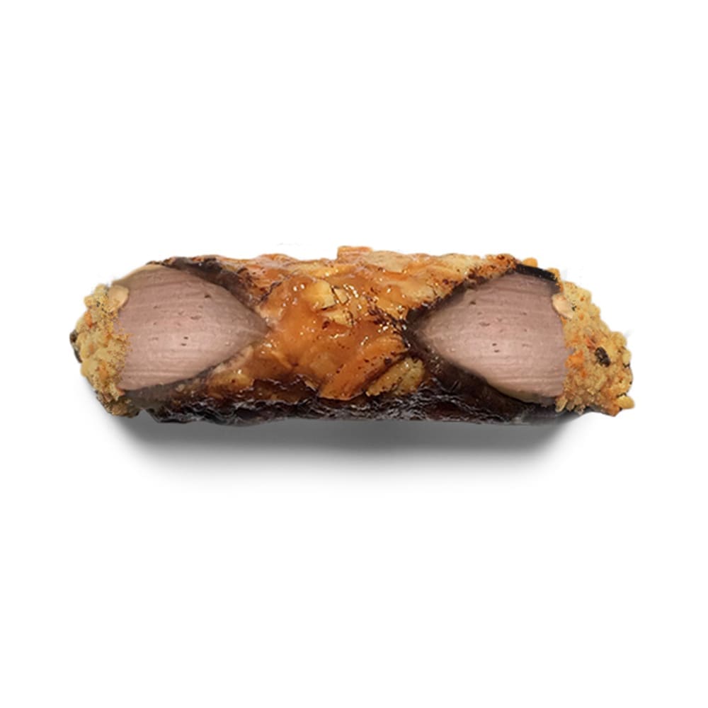 Delight in our Gluten Free Chocolate Cannoli, featuring a crisp almond brittle shell filled with hazelnut chocolate and topped with chopped peanuts, ideal for gluten free menus.