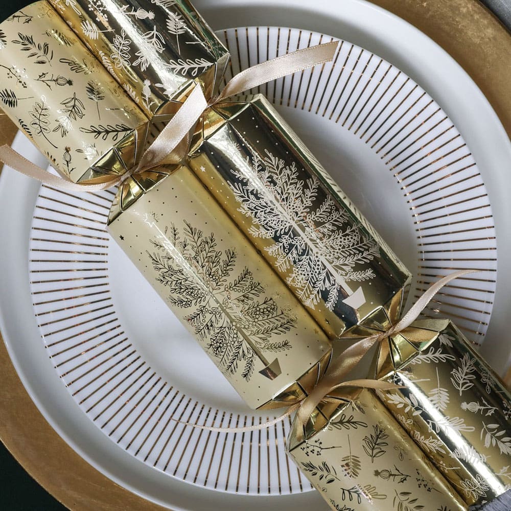 Golden Botanical 12” Crackers provide a unique blend of elegance and functionality with FSC certified materials, recyclable packaging, and reusable decorative items. Packaged as 1x50, perfect for professional kitchen use.
